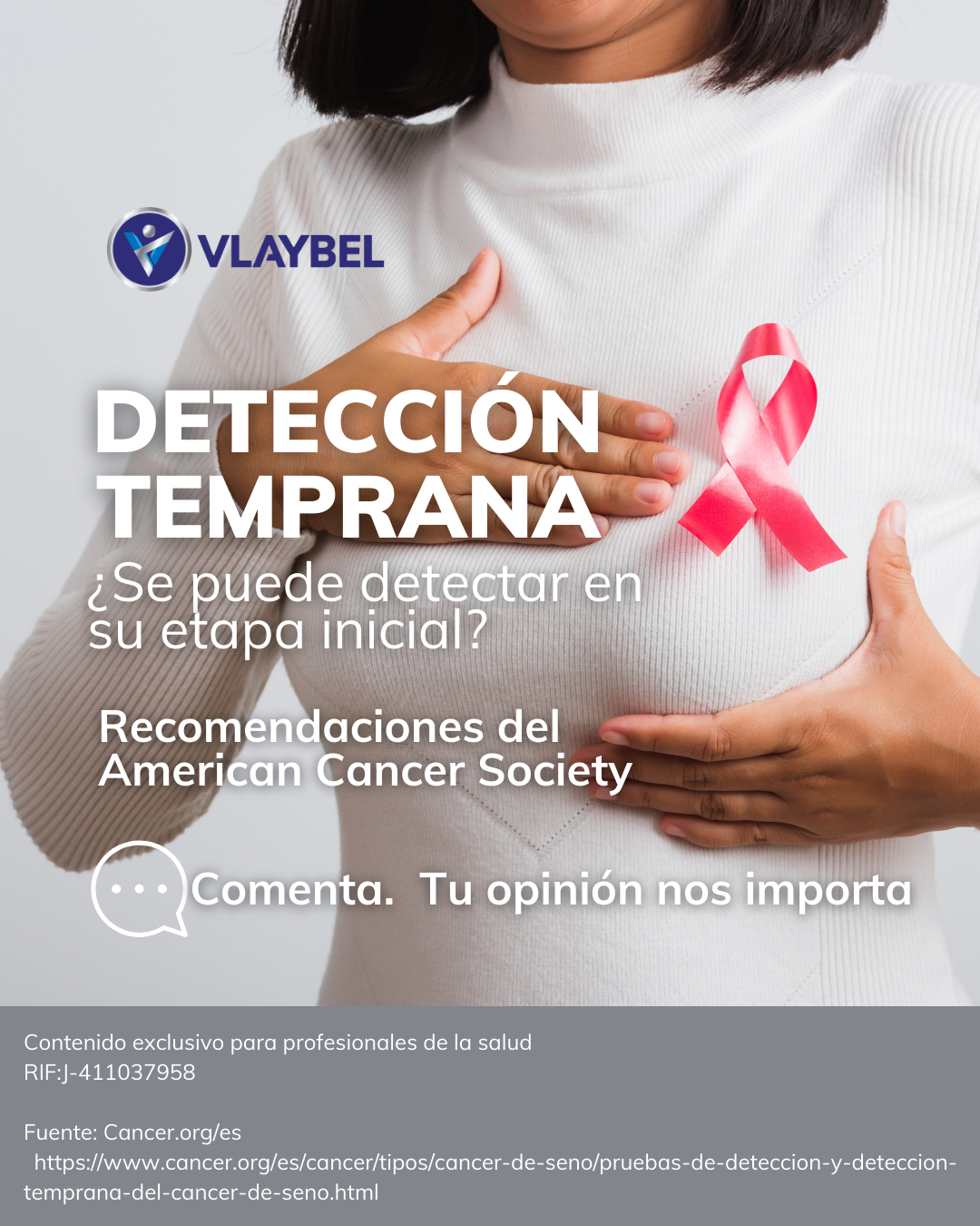 Las recomendaciones de "The American Cáncer Society" enfatizan la importancia de la prevención en el proceso de la detección temprana para mujeres en edad de riesgo promedio medio alto. Seguir un plan de revisión anual es un método que le permite a toda mujer buscar una mejor calidad de vida.